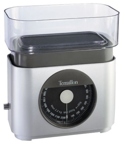 Type: mechanical, design: bowl, weighing limit: 2.20 kg, measurement accuracy: 20 g, additional functions: tare compensation