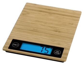 Type: electronic, design: platform, weighing limit: 5 kg, measurement accuracy: 1 g, additional functions: automatic shutdown, liquid volume measurement, tare compensation, indication: battery charge