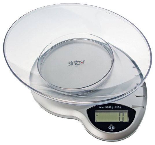 Type: electronic, design: bowl, weighing limit: 3 kg, measurement accuracy: 1 g, additional functions: automatic shutdown, design features: removable platform/bowl, indication: battery charge, overload