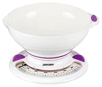 Type: mechanical, design: bowl, weighing limit: 3 kg, measurement accuracy: 25 g, design features: removable platform/bowl