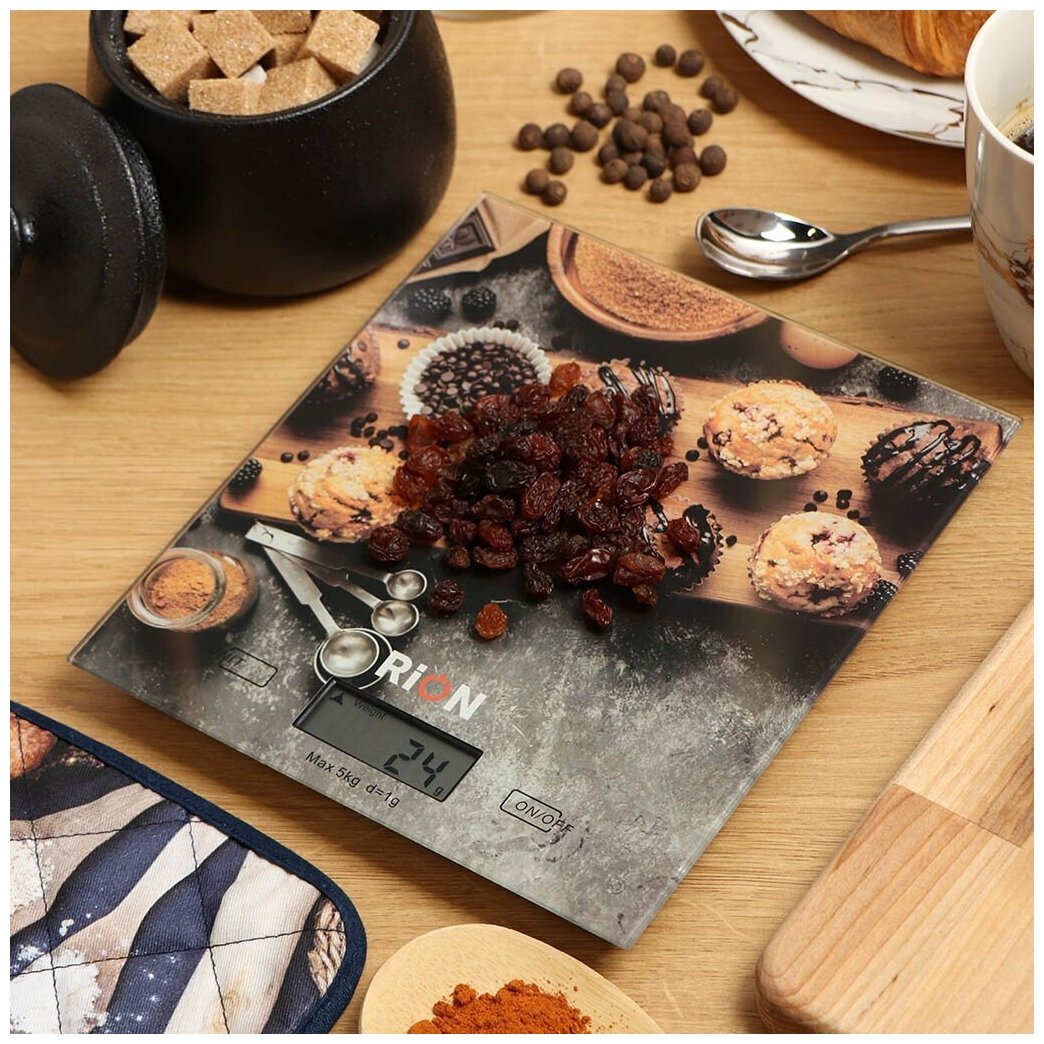 Type: electronic, design: platform, weighing limit: 5 kg, measurement accuracy: 1 g, additional functions: automatic shutdown, liquid volume measurement, indication: battery charge, overload