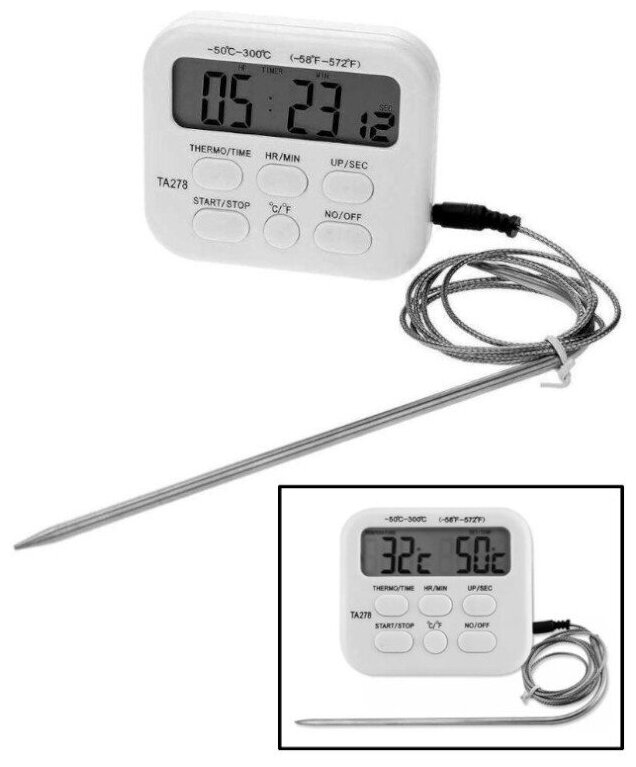 Type: thermometer, with probe, case material: plastic, device type: electronic