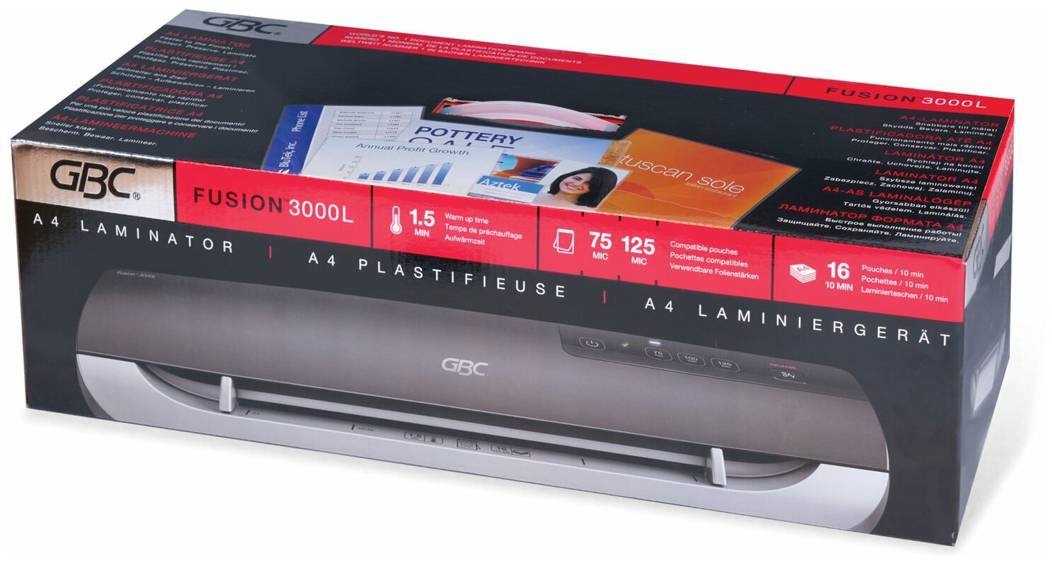 Laminator type: batch, lamination method: hot, cold, maximum format: A4, heating time: 1 min.