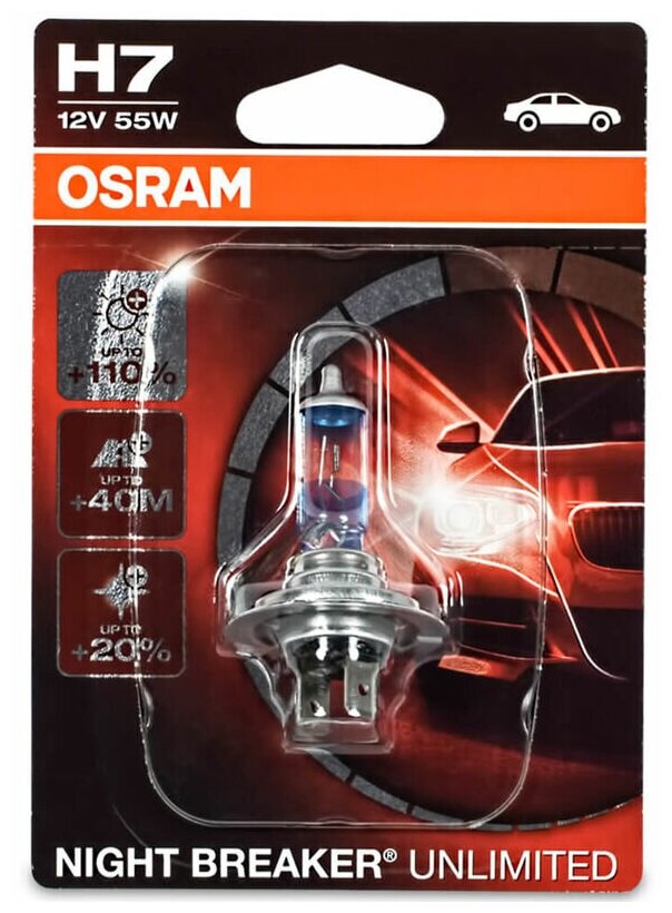 Lamp automobile halogen Osram Night breaker unlimited 64210NBU-01B H7 55W 1 piece.
