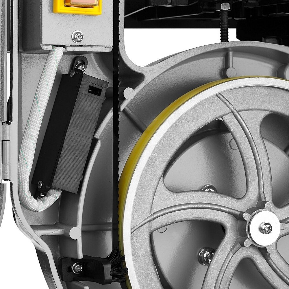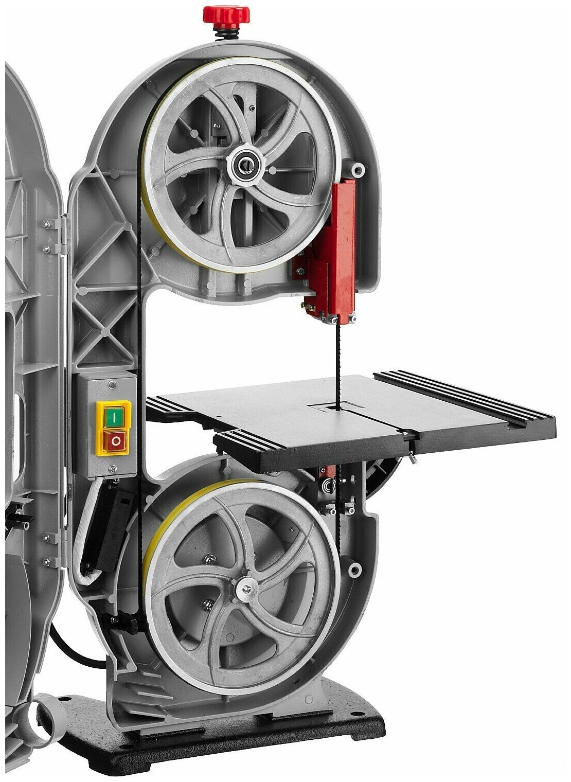 Type: vertical, operating principle: semi-automatic, maximum workpiece height: 80 mm, power: 350 W, voltage: 220 V, processing material: wood, metal, plastic, blade length: 1425 mm, work table length: 290 mm, wide