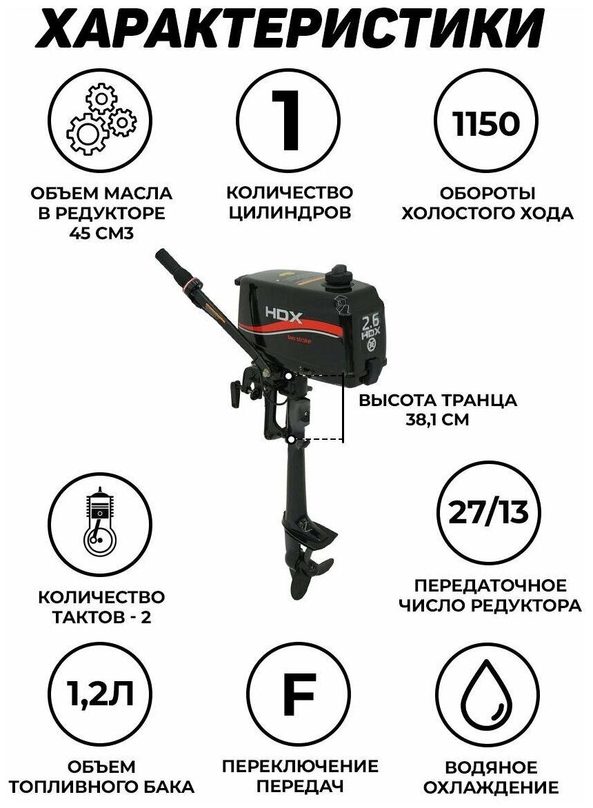 Power: 2.60 HP, power: 1900 W, features: engine kill switch, shallow water travel, electronic ignition system, steering: tiller, leg length: 381 mm, transom height: S, weight: 9.80 kg
