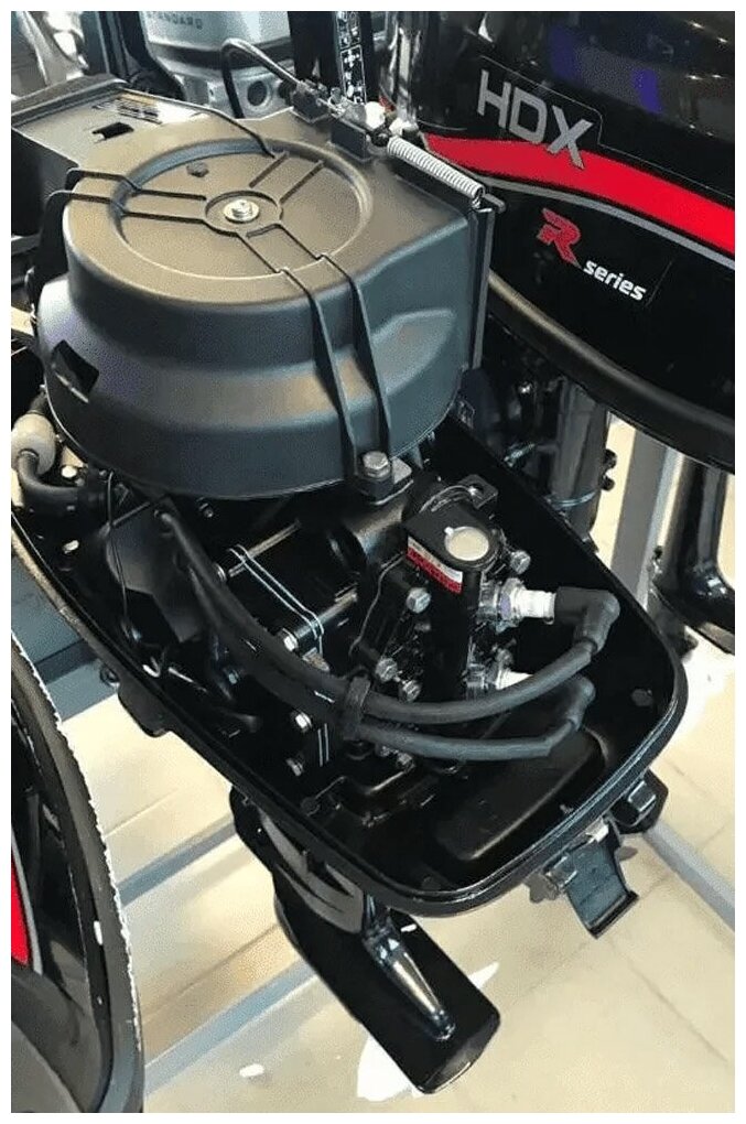 Propeller exhaust system; speed limiter; gearbox: 2.08 x; fuel supply system: carburetor; transmission: forward-neutral-backward; fuel tank: external; type of lubricant: mixture; piston stroke: 43 mm; maximum engine speed