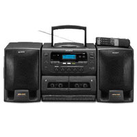 Type: CD/cassette, radio bands: AM, FM, features: detachable speakers, remote control, stereo sound, clock