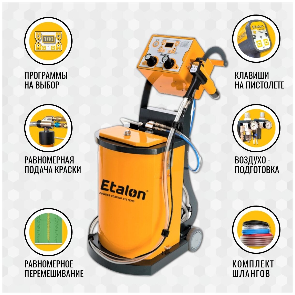 Control unit for operating parameters of the Etalon B 400 paint gun Manual application gun Etalon MG 300 Paint filling tank 50 liters with a fluidizing fluidized bed system Powder injector PI3 Quick-release coupling and