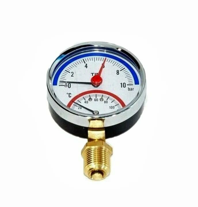 Pressure gauge type: analog, device type: deformation, operating principle: hydraulic, connection: radial, connecting size: 1/2", maximum operating pressure: 10 bar, maximum measuring value: 10 ba