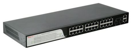 Number of LAN ports: 24, base data transfer rate: 100 Mbps, network standards: IEEE 802.1d Spanning Tree, IEEE 802.1p Priority tags, IEEE 802.1q VLAN, features: PoE support, stacking support