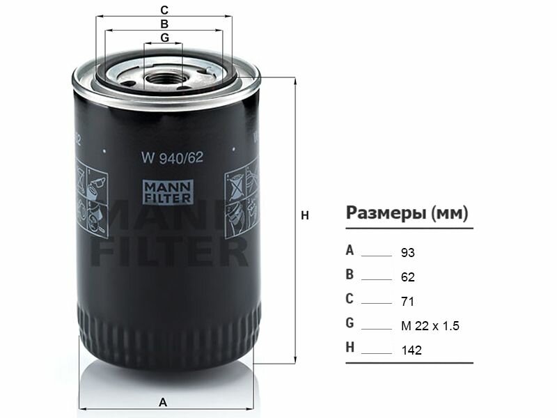 Citroen Jumper, Fiat Ducato, Great Wall Safe, Iveco Daily, Peugeot Boxer, For all models, Oil filter .....MANN FILTER W940/62....
