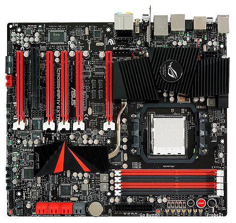 Switches - 1 x ROG, 1 x RC Bluetooth, 1 x Clr CMOS; support for graphics cards from different manufacturers - two PCI-E slots support only CrossFireX mode AMD890FX chipset, three other slots support CrossFireX/nVIDIA SLI modes Hyd chipset