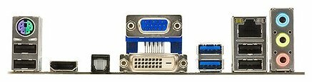 DVI, HDMI, LPT, PS/2 keyboard/mouse, VGA, S/PDIF optical output