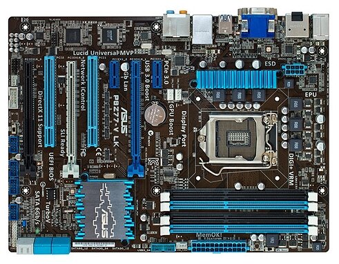 Socket: LGA1155, chipset name: Intel Z77, form factor: ATX, processor manufacturer: Intel, memory type: DDR3 DIMM, number of memory slots: 4, number of PCI-E x16 slots: 3, number of PCI-E x1 slots: 2 , wireless interfaces: no Wi-Fi, max