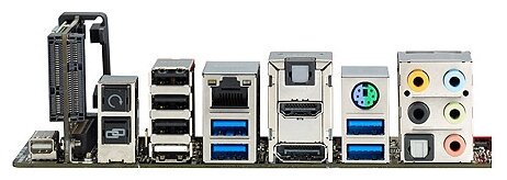 DisplayPort, HDMI, PS/2 keyboard/mouse, USB 3.0 x 4, S/PDIF optical output