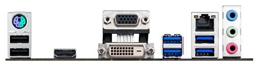 DVI, HDMI, LPT, PS/2 keyboard/mouse, USB 3.0 x 4, VGA