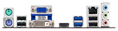 DVI, HDMI, LAN RJ-45, PS/2 keyboard, PS/2 keyboard/mouse, PS/2 mouse, USB 2.0 Type-A x 4, USB 3.0 x 2, VGA