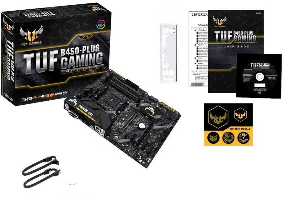 Socket: AM4, chipset name: AMD B450, form factor: ATX, processor manufacturer: AMD, memory type: DDR4 DIMM, ECC/non-ECC support, number of memory slots: 4, number of M.2 slots: 1, number of slots PCI-E x16: 2, Number of PCI-E x1 slots: 3, no