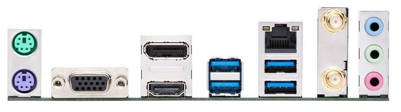 DisplayPort, HDMI, PS/2 keyboard/mouse, VGA