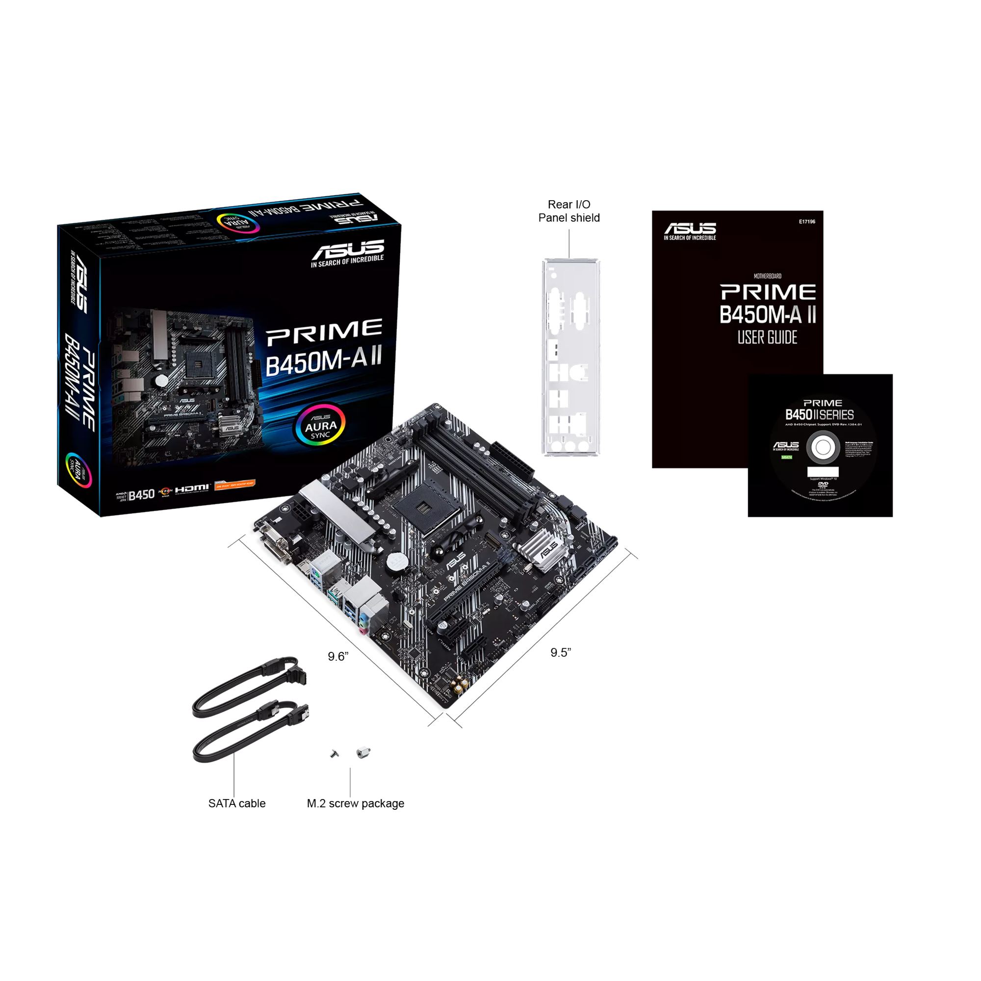 Socket: AM4, chipset name: AMD B450, form factor: microATX, processor manufacturer: AMD, memory type: DDR4 DIMM, support ECC/non-ECC, DDR4, number of memory slots: 4, number of M.2 slots: 1, Number of PCI-E x16 slots: 1, Number of PCI-E x1 slots
