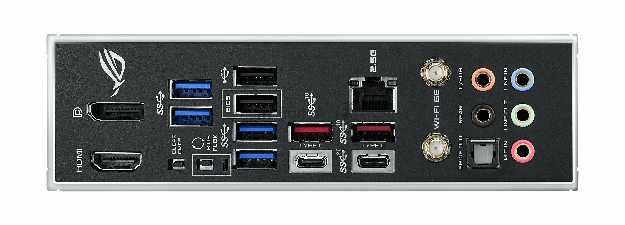 DisplayPort, HDMI, LAN RJ-45, USB 2.0 Type-A x 2, USB 3.2 Gen1 Type-A x 2, USB 3.2 Gen1 Type-A x 4, USB 3.2 Gen2 Type-C, USB 3.2 Gen2x2 Type-C, output S/PDIF optical