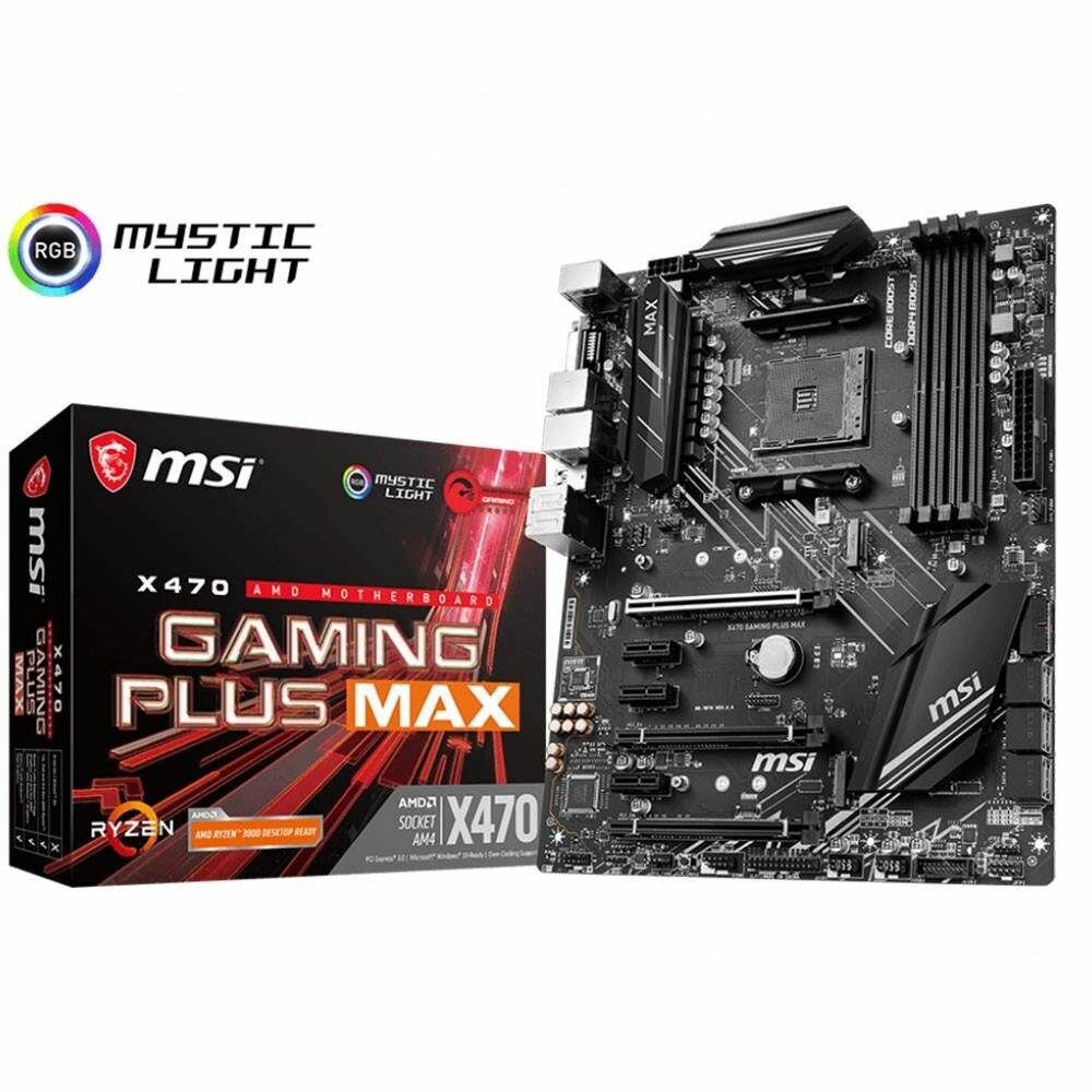 Socket: AM4, chipset name: AMD X470, form factor: ATX, processor manufacturer: AMD, memory type: DDR4 DIMM, ECC/non-ECC support, number of memory slots: 4, number of M.2 slots: 2, number of slots PCI-E x16: 3, Number of PCI-E x1 slots: 3, no