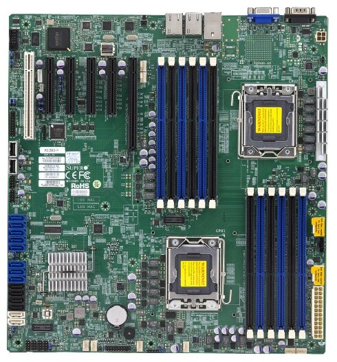 Socket: LGA1356, chipset name: Intel C602, form factor: custom, processor manufacturer: Intel, memory type: DDR3 DIMM, ECC/non-ECC support, buffered RDIMM memory support, number of memory slots: 12, Number of PCI-E slots x