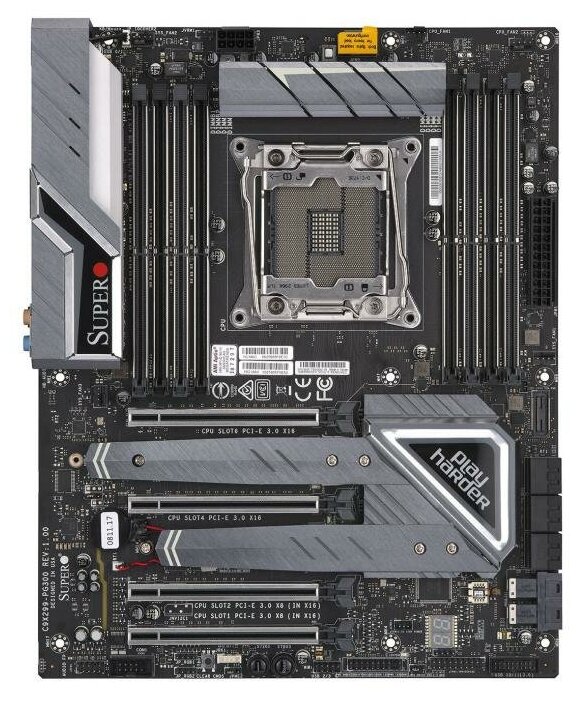 Socket: LGA2066, chipset name: Intel X299, form factor: ATX, processor manufacturer: Intel, memory type: DDR4 DIMM, number of memory slots: 8, number of M.2 slots: 2, number of PCI-E x16 slots: 4, wireless interfaces: no Wi-Fi, maximum