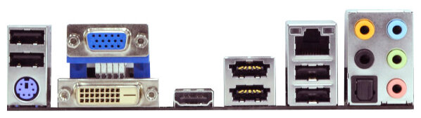 DVI, HDMI, PS/2 keyboard/mouse, VGA, eSATA x 2, S/PDIF optical output