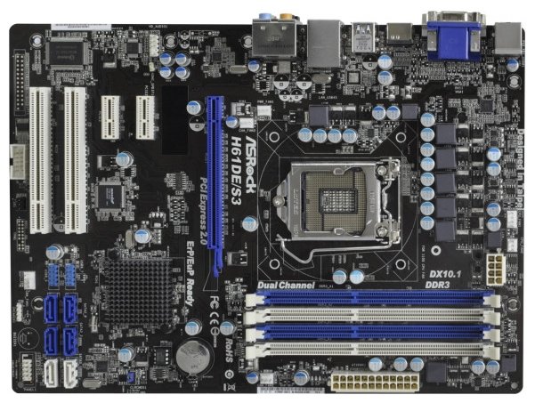 Socket: LGA1155, chipset name: Intel H61, form factor: ATX, processor manufacturer: Intel, memory type: DDR3 DIMM, number of memory slots: 4, number of PCI-E x16 slots: 1, number of PCI-E x1 slots: 2 , wireless interfaces: no Wi-Fi, max