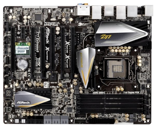 Socket: LGA1155, chipset name: Intel Z77, form factor: ATX, processor manufacturer: Intel, memory type: DDR3 DIMM, number of memory slots: 4, number of PCI-E x16 slots: 6, number of PCI-E x1 slots: 1 , wireless interfaces: Bluetooth, Wi-Fi 802.11n,