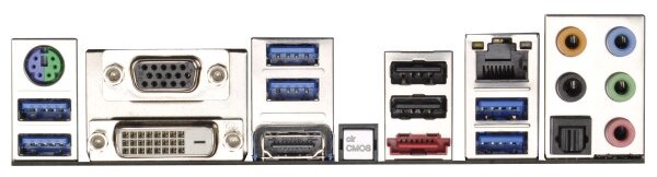 DVI, HDMI, PS/2 keyboard/mouse, USB 3.0 x 6, VGA, eSATA, S/PDIF optical output