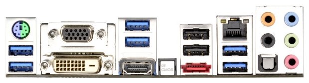 DVI, HDMI, PS/2 keyboard/mouse, USB 3.0 x 6, VGA, eSATA, S/PDIF optical output