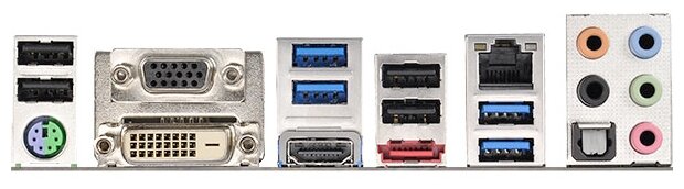 DVI, HDMI, PS/2 keyboard/mouse, USB 3.0 x 4, VGA, eSATA, S/PDIF optical output