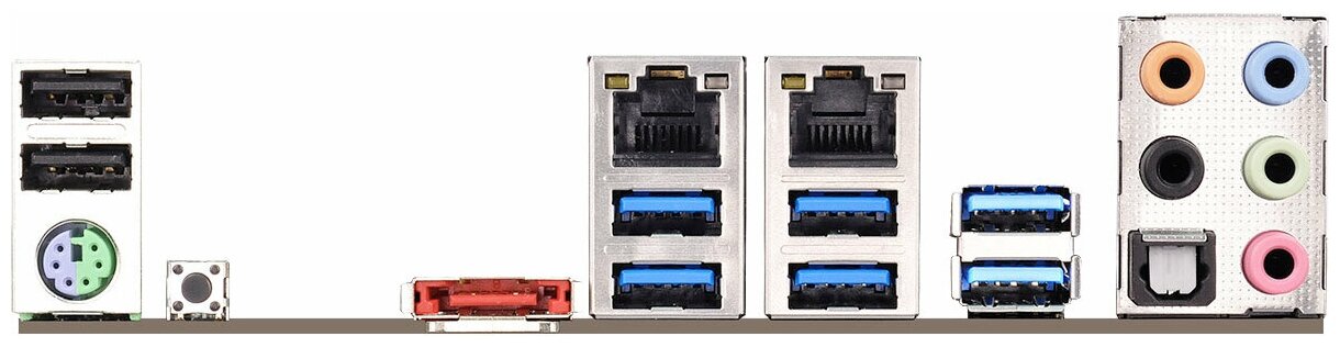 PS/2 keyboard/mouse, USB 3.0 x 4, USB 3.1 x 2, eSATA, S/PDIF optical output