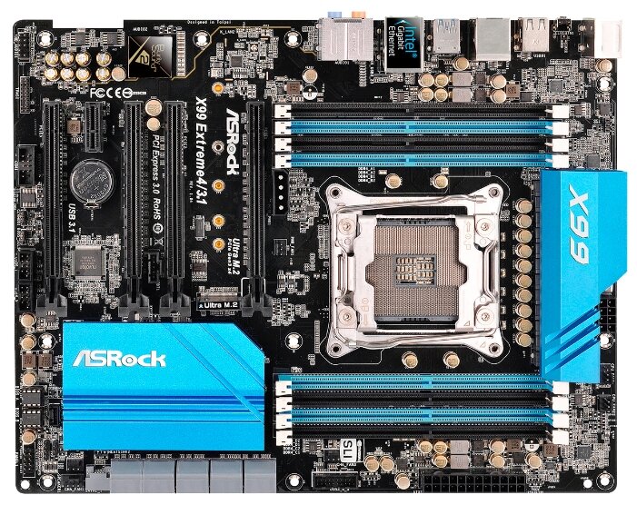 Socket: LGA2011-3, chipset name: Intel X99, form factor: ATX, processor manufacturer: Intel, memory type: DDR4 DIMM, ECC/non-ECC support, number of memory slots: 8, number of M.2 slots: 1, Number of PCI-E x16 slots: 4, Number of PCI-E x1 slots: