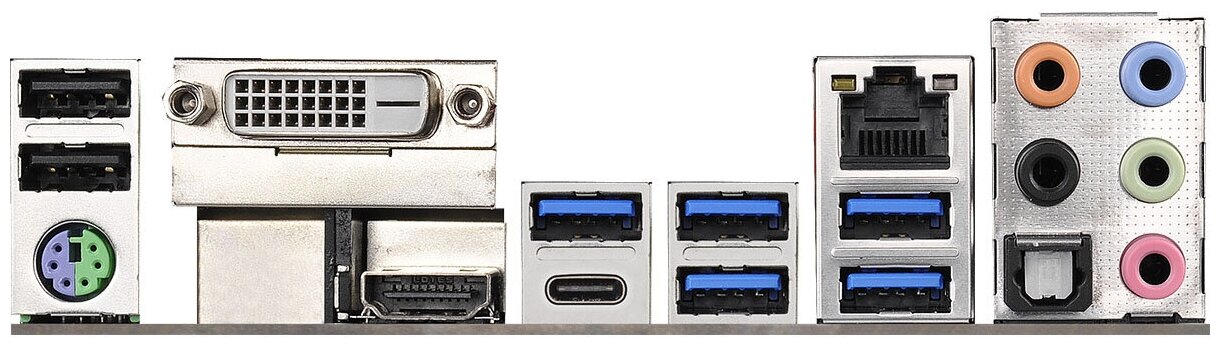 DVI, HDMI, PS/2 keyboard/mouse, USB 3.0 x 6, S/PDIF optical output