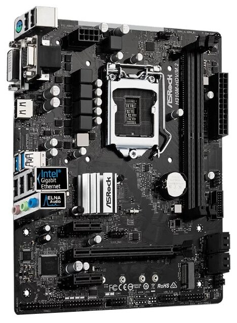 Socket: LGA1151 v2, chipset name: Intel H310, form factor: microATX, processor manufacturer: Intel, memory type: DDR4 DIMM, number of memory slots: 2, number of M.2 slots: 1, number of PCI-E x16 slots: 1 , Number of PCI-E x1 slots: 2, wireless