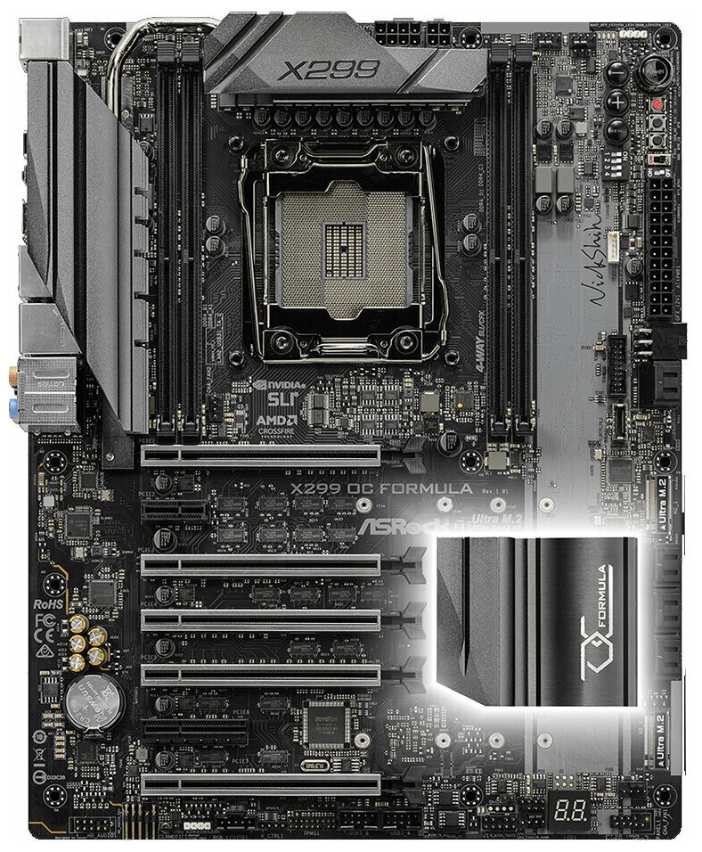 Socket: LGA2066, chipset name: Intel X299, form factor: ATX, processor manufacturer: Intel, memory type: DDR4 DIMM, number of memory slots: 4, number of M.2 slots: 2, number of PCI-E x16 slots: 5, wireless interfaces: no Wi-Fi, maximum