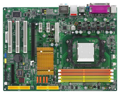 Socket: AM2, chipset name: NVIDIA nForce4 4X, form factor: ATX, processor manufacturer: AMD, memory type: DDR2 DIMM, number of memory slots: 4, number of PCI-E x16 slots: 1, number of PCI-E x1 slots: 2, wireless interfaces: no Wi-Fi, maxi