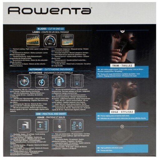 Purpose: for beard and mustache, type: trimmer, power supply: autonomous/from mains, battery type: own battery, minimum cutting length: 0.50 mm, maximum cutting length: 20 mm, blade material: stainless steel