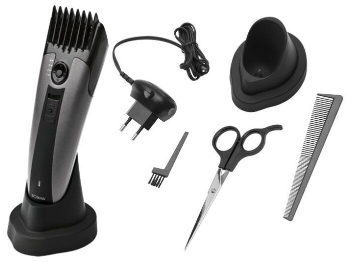 Purpose: for hair cutting, type: hair clipper, power: autonomous/from the mains, length adjustment method: changing attachments and adjustment, features: charging indicator, included: scissors, case, number of attachments: 2, in�
