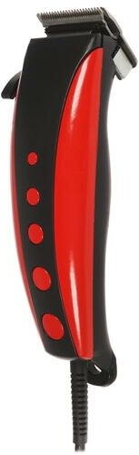 Purpose: for hair cutting, type: hair clipper, power: mains, blade material: stainless steel, length adjustment method: changing attachments and adjustment, features: rubberized inserts, included: scissors