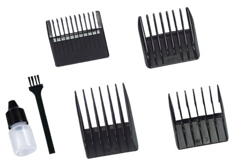 Purpose: for hair cutting, type: hair clipper, power: mains, minimum cutting length: 0.10 mm, length adjustment method: changing attachments and adjustment, features: rotary motor, number of attachments: 4