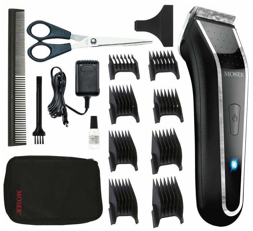 Purpose: for hair cutting, type: hair clipper, power: autonomous/from the mains, length adjustment method: changing attachments and adjustment, features: charging indicator, included: scissors, case, number of attachments: 2, in�