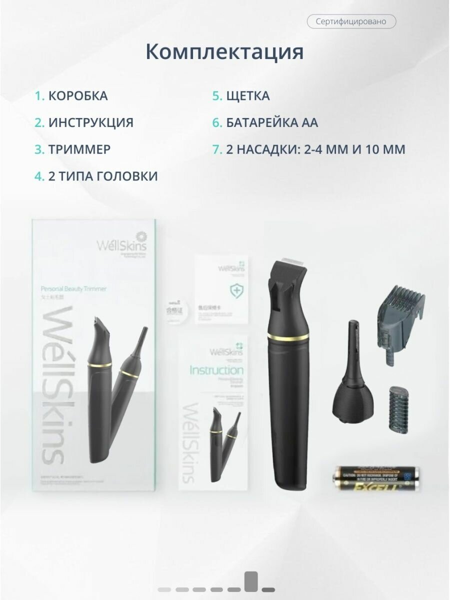 Purpose: for eyebrows, for cutting hair, type: trimmer, power supply: autonomous, battery type: AA, blade material: stainless steel, additional functions: beard trimming, number of attachments: 4