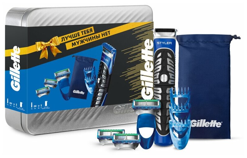Gillette Styler metal box gift set with 3 refills, 3 nozzles and pouch