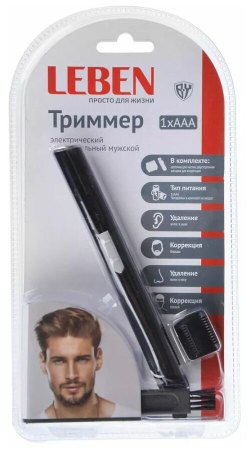 LEBEN universal trimmer for men, 13 cm, 1 nozzle, 1 brush, aluminium, plastic, power supply 1xАА