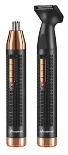 Nozzle for cutting hair in the nose, trimmer, in the ears; edging attachment; cleaning brush; charging cable; protective cap
